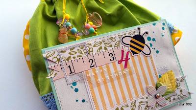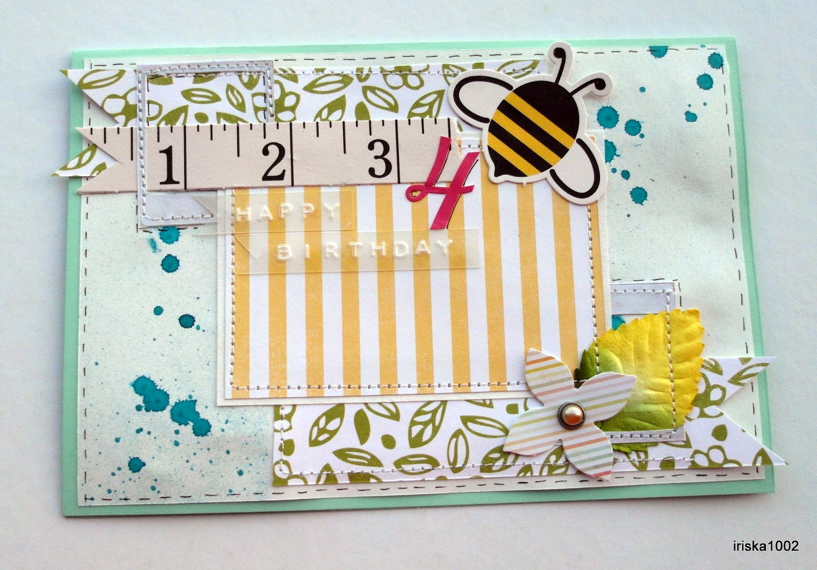 Открытка на 4-х летие сделана в дополнение к мини-альбому (который в мешочке)