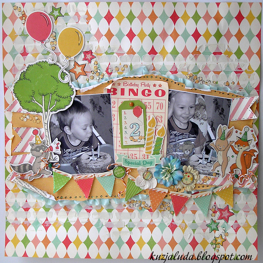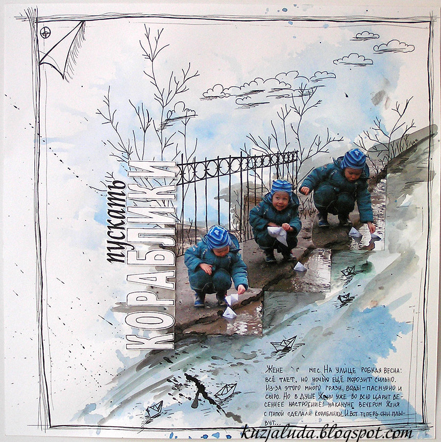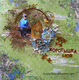 В скрапе я уже почти 5 лет. Все началось банально с желания сделать сыну альбомчик, правда, тогда я мыслила критериями цветной бумаги. Ну а когда села вплотную изучать вопрос, наткнулась на волшебный мир скрапбукинга:) И моя первая работа выглядела так:)