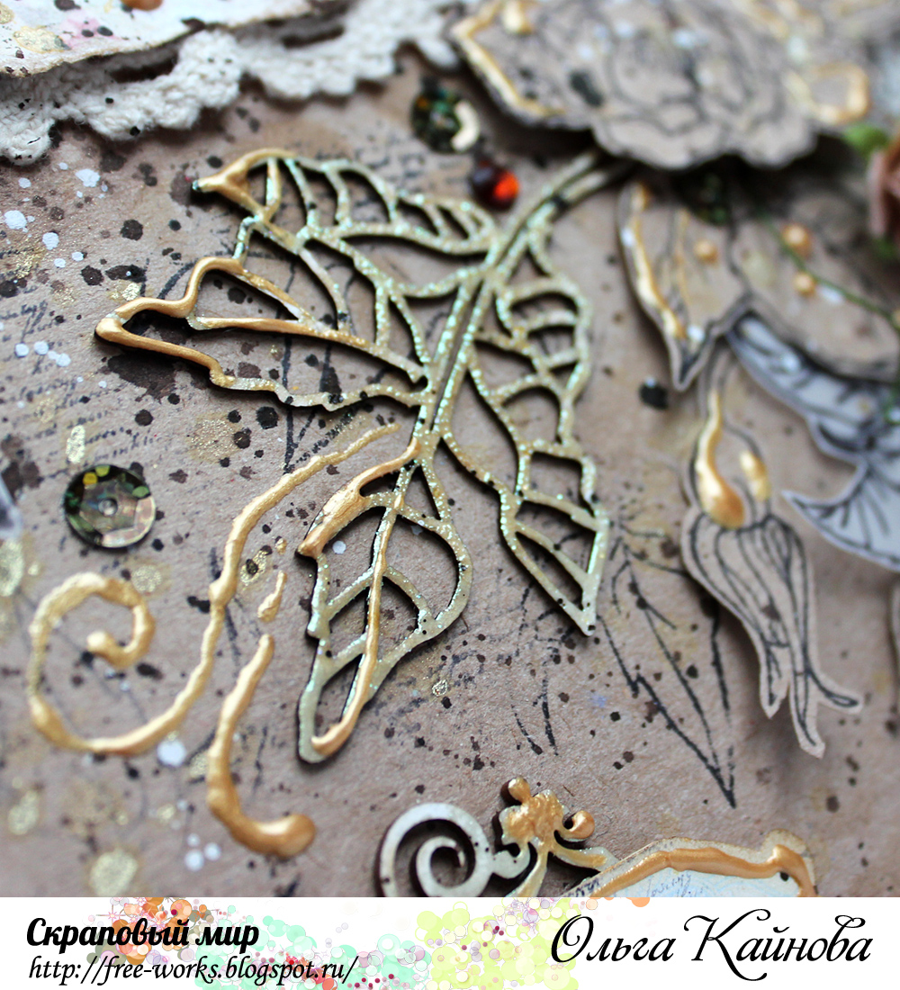 Я использовала этот чип светлой стороной, слегка побрызгала золотистым спреем.