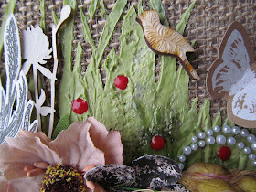 Кроме текстуры, которую я сделала с помощью штампов, я нанесла дополнительную текстуру с помощью деко-геля. У меня получилось с его помощью "порисовать": капнула большую каплю деко-геля в основание пучка травы, а затем уже сами травинки "вывела" из этой капли обратной стороной кисточки.